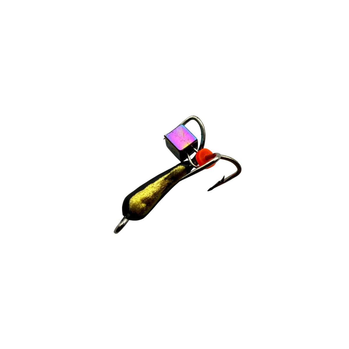 Мормышка Вольфрамовая Владимирская "Чёртик с подвесным кубиком хамелеон" - 4 мм - 0,4 г - Арт.580