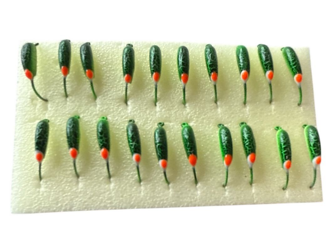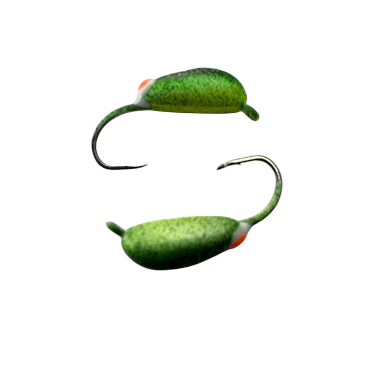 Мормышка Вольфрамовая Владимирская Долька чеснока - С бело-красной точкой - 2.5 мм - 0.4 г - Фосфорно-зеленый - Арт.633