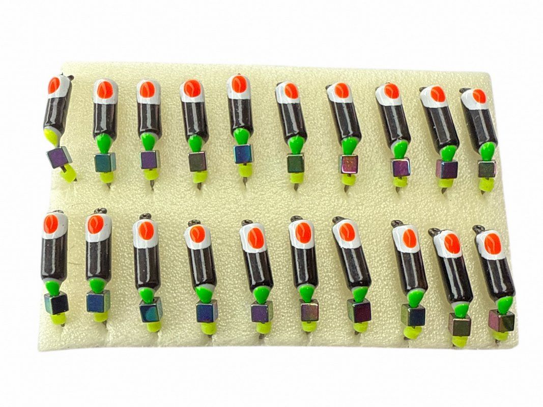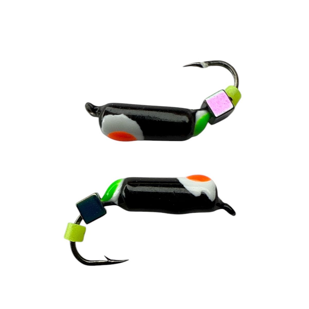 Мормышка Вольфрамовая Владимирская Гвоздик - С кубиком хамелеон - 3.5 мм - 0.9 г - Чёрный с бело-красно-зеленой точкой - Арт.636