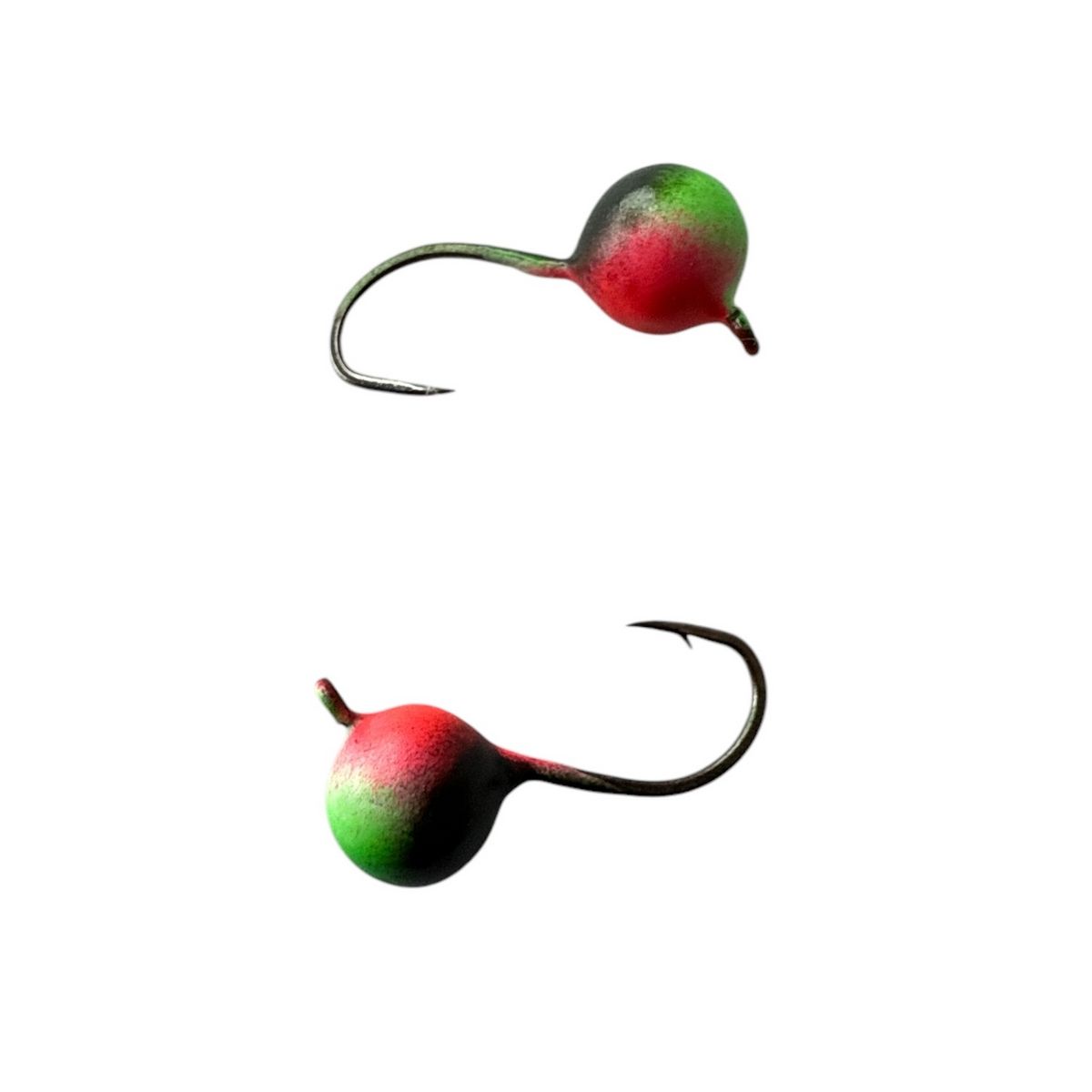 Мормышка Вольфрамовая Владимирская Шар Граненый с кембриком - Крашеный - 4 мм - 0.6 г - Чёрно-зелёно-красный - Арт.621