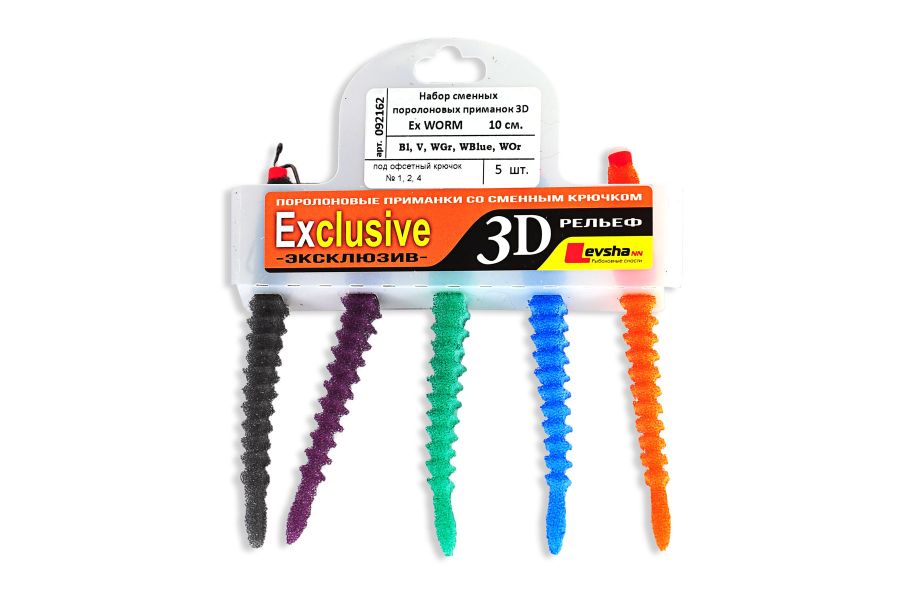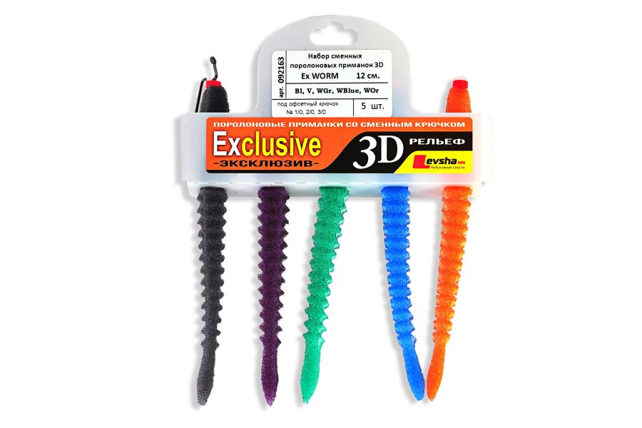 Сменная приманка - Набор поролоновых рыбок Levsha NN 3D ExWorm - Цвет V, Wbl, WLgr, Wor, Wblue
