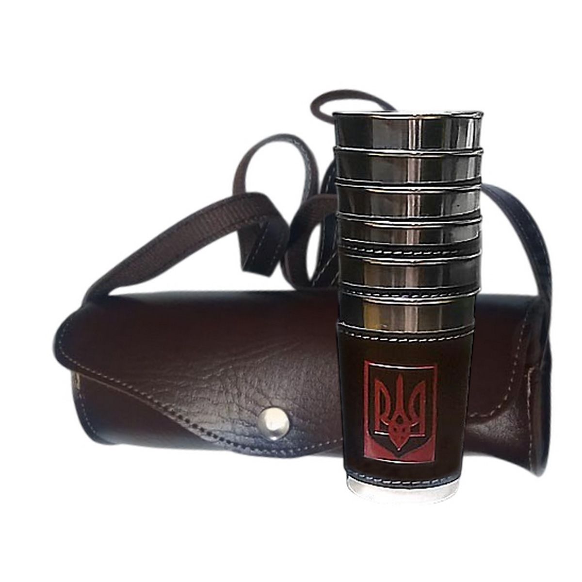 Набор стаканов из нержавеющей стали обтянутых кожей Украина JB-02 - 6 шт. x 180 мл - В кожаном чехле - Китай