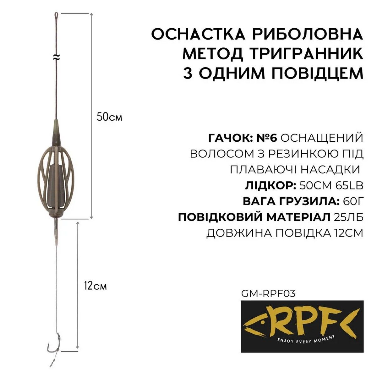 Оснащенный Монтаж RPF Метод-Тригранник - готовая рыболовная оснастка с одним поводком и одним крючком оснащенным волосом с резинкой для плавающих насадок или донных насадок