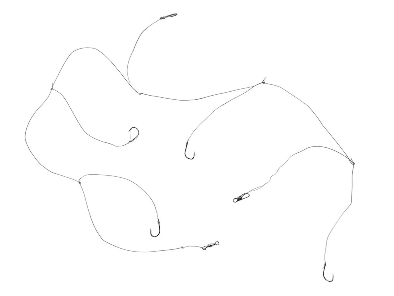 Оснастка самодур на 5 крючков идеально подходит как для рыбалки с берега, так и с лодки, а так же для ловли на резинку.