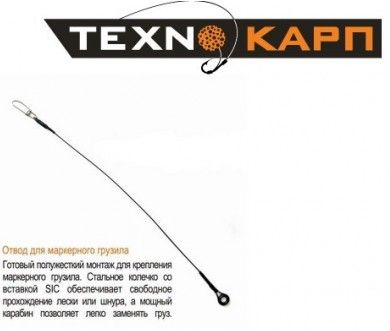 Маркерный отвод применяется в маркерной оснастке как удлинитель для исключения перехлеста грузила и основной лески или «шоклидера». Также гарантирует хорошее стабильное скольжение грузила и всплытие поплавка.