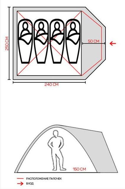 - Внутренняя палатка: 190T Breathable Fabric; 190T Polyester 2500 мм