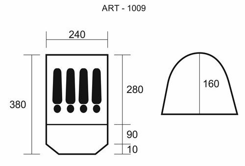 - Размеры: 380х240х160 см.