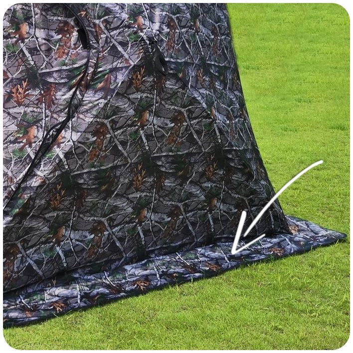 Внутри палатки по всему периметру пола вшита внутренняя ветрозащитная юбка.