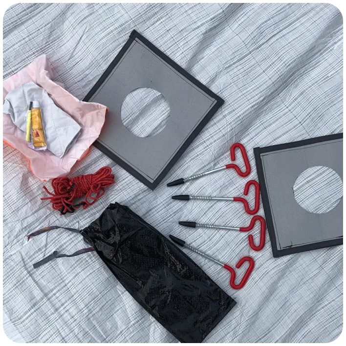 Комплект штормовых оттяжек, ремкомплект и 2 разделки из негорючей ткани под трубу.