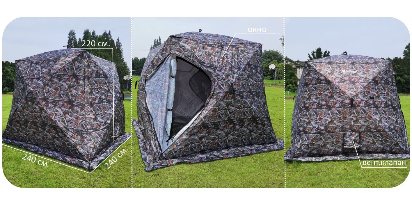 Палатка-куб зимняя четырехслойная - Mircamping 2019 - Камуфляж - Мобильная баня - С полом