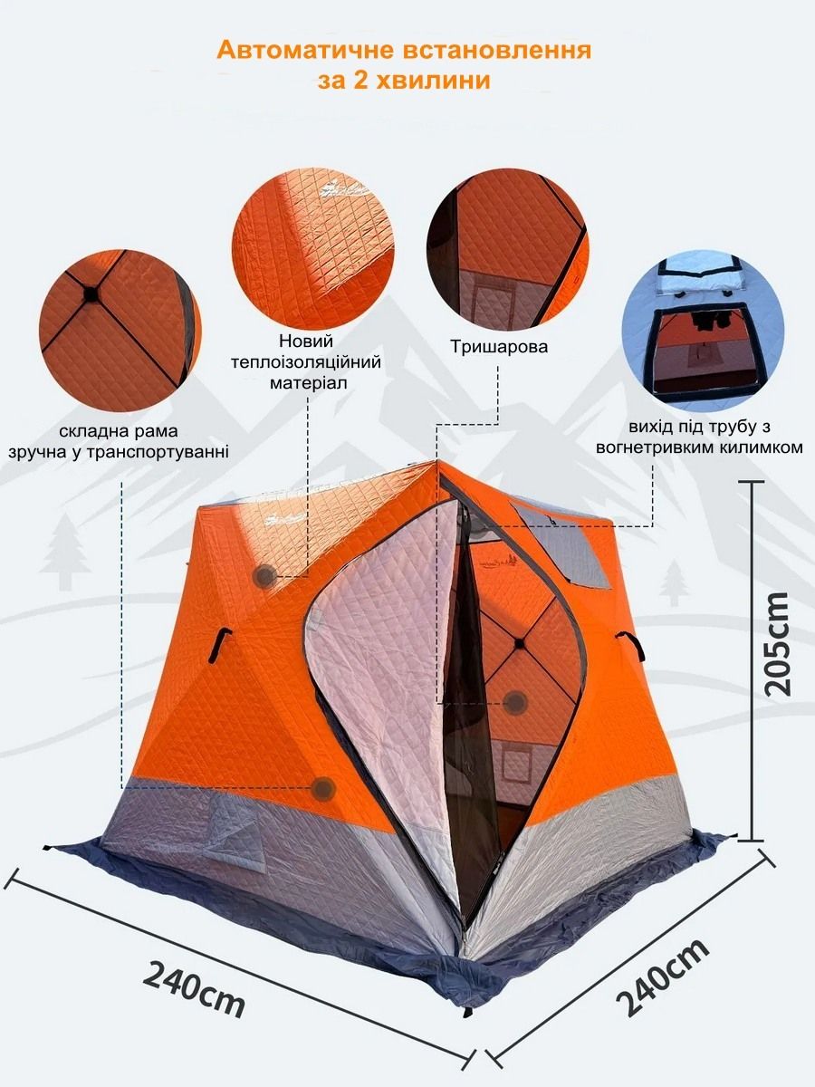 Палатка-куб зимняя трехслойная утепленная Mircamping 2017А (Компакт) - 4-х местная - Мобильная баня - С полом