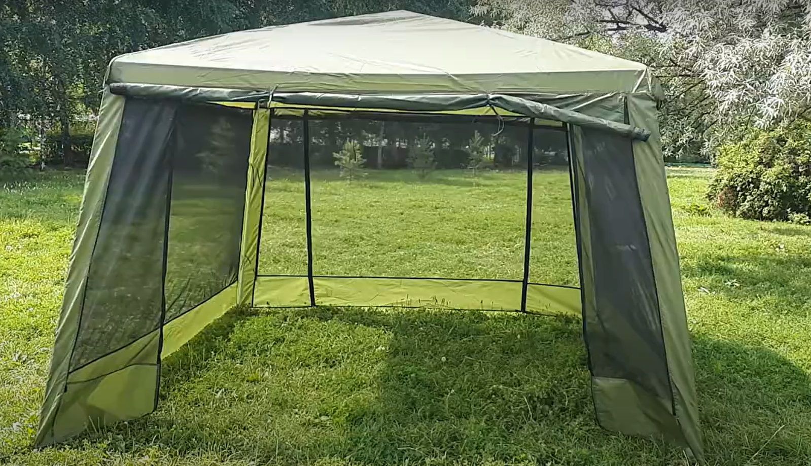 - Шатер спасает от легкой непогоды, солнца и насекомых