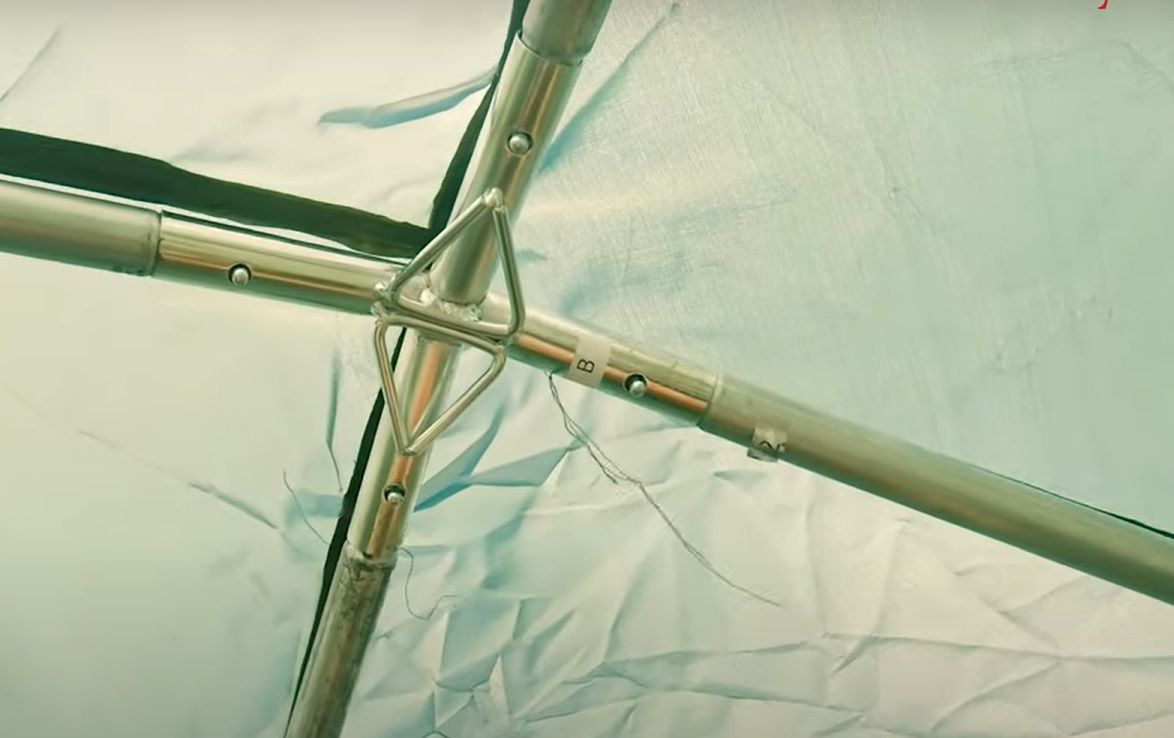 Основа конструкции состоит из прочного каркаса и плотного тента. В оконных проемах есть анти москитная сетка. Во время дождя, или ветра окна закрываются тентом, который является неотъемлемой частью шатра. В солнечную погоду, тент скручивается наверх и крепится к шатру при помощи специальных креплений. Двери также закрываются тентом и застегиваются на застежку-молнию.