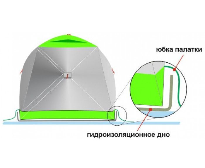 | Тент | трехслойный: внешний - ткань полиэстер Оксфорд 240D WR (135 г/м кв), средний - нетканый утеплитель (200 г/м кв), внутренний - ткань полиэстер Оксфорд 210D (100 г/м кв) |