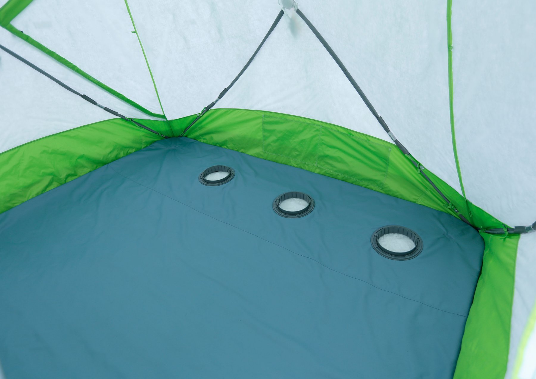 - Утепленный пол палатки позволяет значительно повысить теплоизоляцию палатки во время подледного лова (опция);