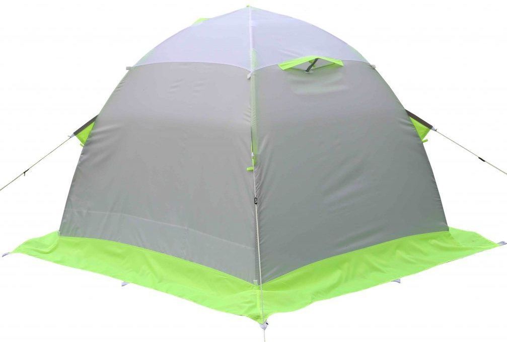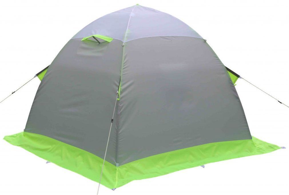 Тент палатки изготовлен из современных высокотехнологичных тканей с водонепроницаемым покрытием, обеспечивающих надежную защиту от атмосферных осадков, сильного ветра и мороза.