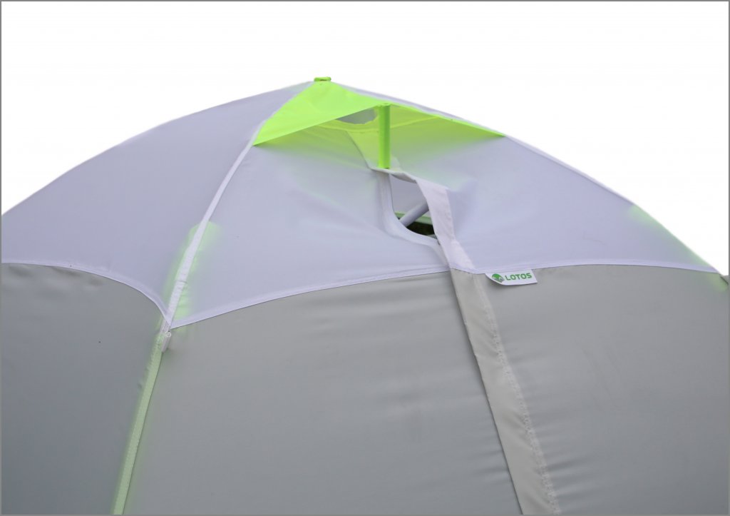 Для хорошей циркуляции воздуха в верхней части купола предусмотрен широкий вентиляционный клапан на утяжке. С внешней стороны клапан защищен от попадания осадков регулируемым козырьком.