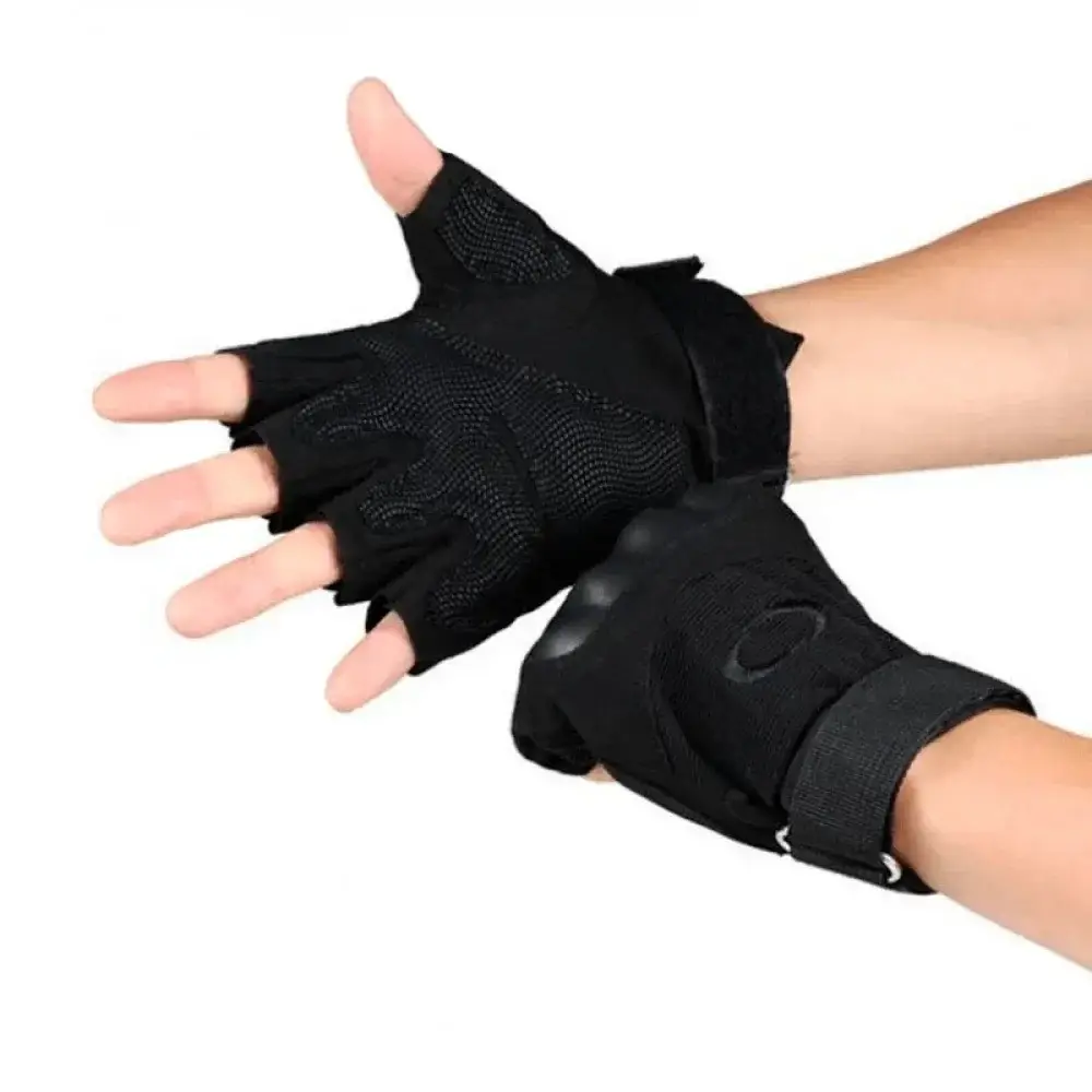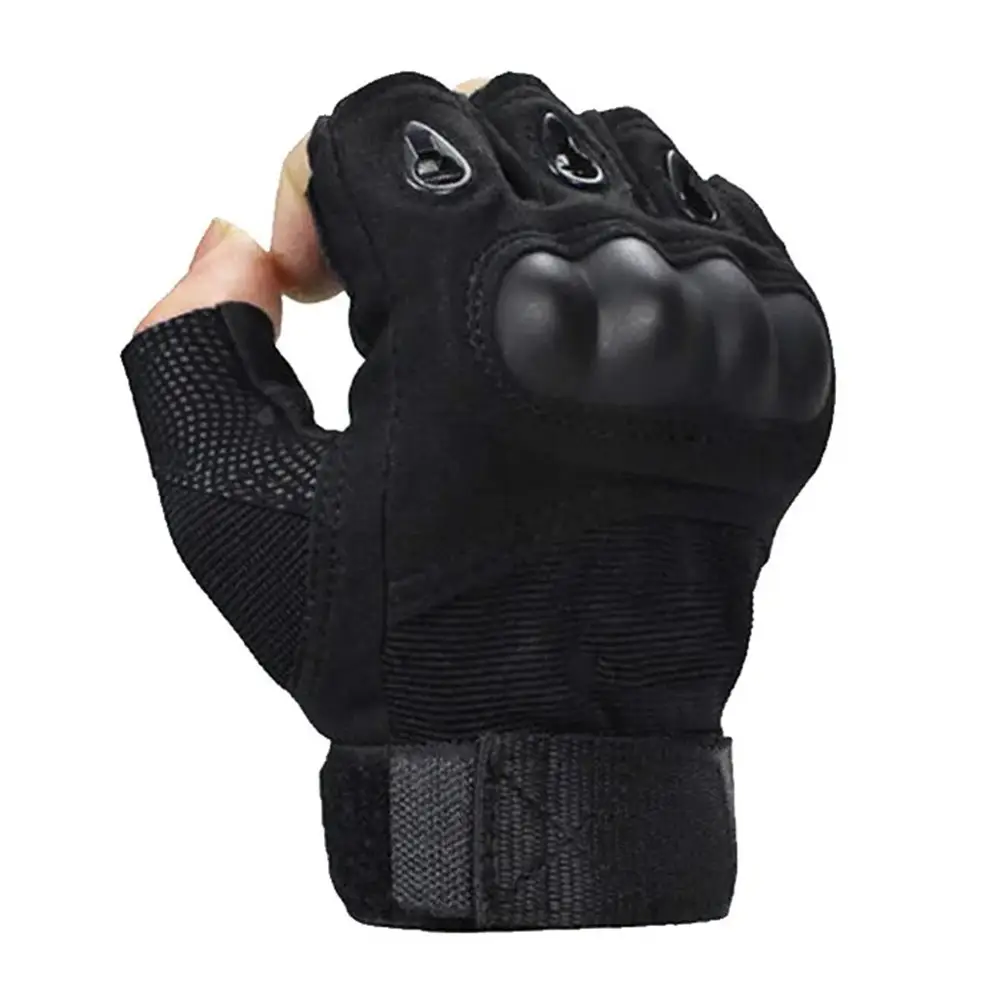 Перчатки тактические без пальцев твердая кость хорошо защищают руку и не стесняют движений. Перчатки подойдут для теплого времени года. Открытые наполовину пальцы никак не будут ограничены в движениях и тактильных ощущениях. Вы спокойно сможете нанизывать наживку, управлять велосипедом или байком, разводить костер.
