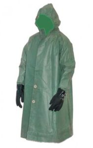 Плащ водостойкий. Относится к водозащитной спецодежде, которая защищает от неблагоприятных условий, ветра и дождя; масел и нефтепродуктов; химических и радиоактивных веществ. Плащ прекрасно справляется с непогодой и пользуется спросом среди военных и рыболовов.