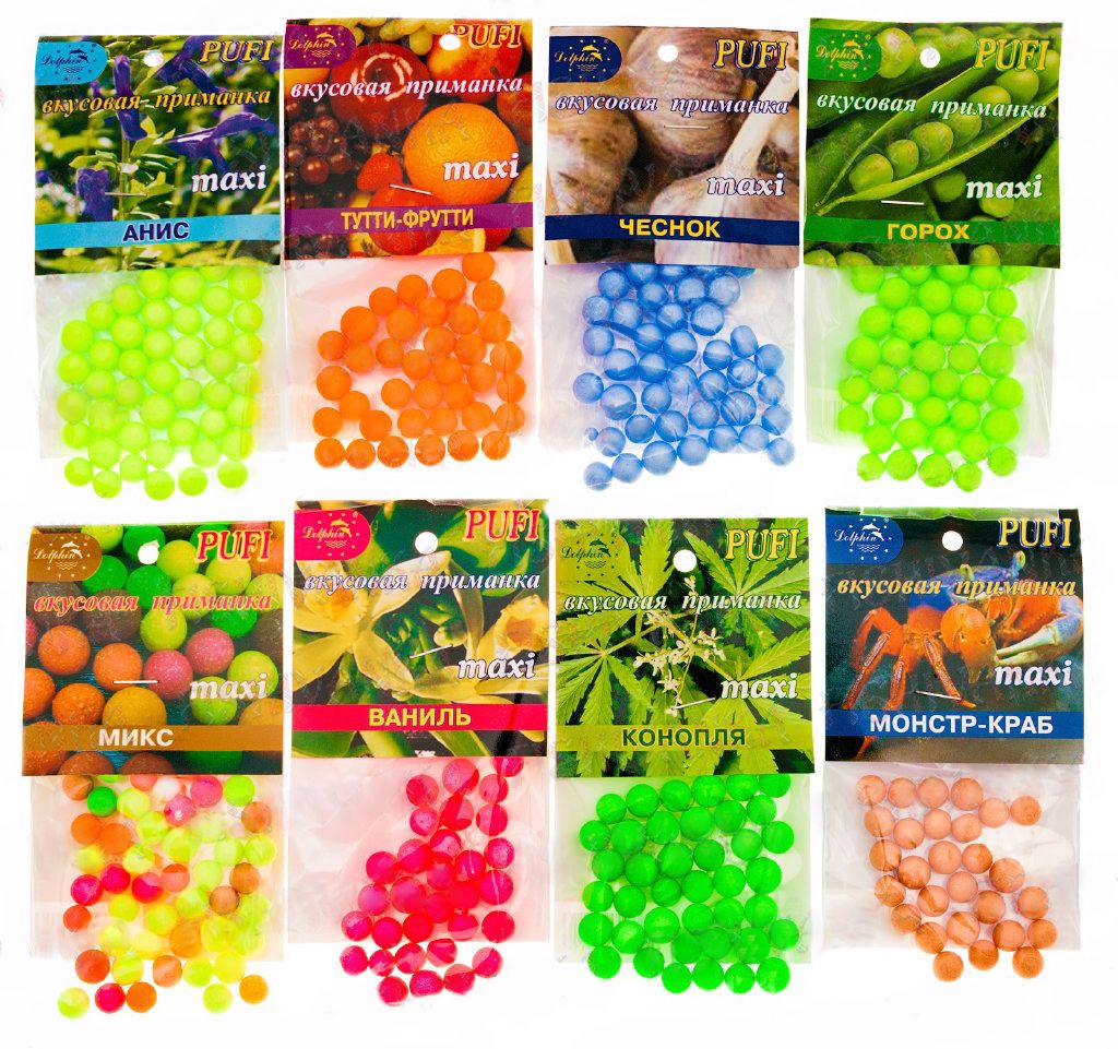 Ароматы у Плавающей наживки Dolphin "Pufi" достаточно насыщенные, то есть это не просто надпись на упаковке. Цвет яркий и он не смывается в воде.