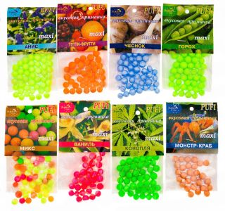 Вкусовая приманка "Pufi" искусственная, по сути - цветной пенопласт с ароматом. Шарики приятные по текстуре, в меру плотные и при этом легко насаживаются на крючок.