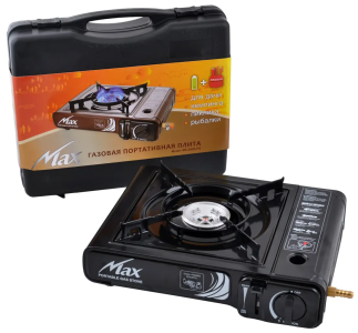 Плита газовая портативная MAX MS-2500LPG - Двойного действия - С адаптером - В кейсе - Корея - Черная