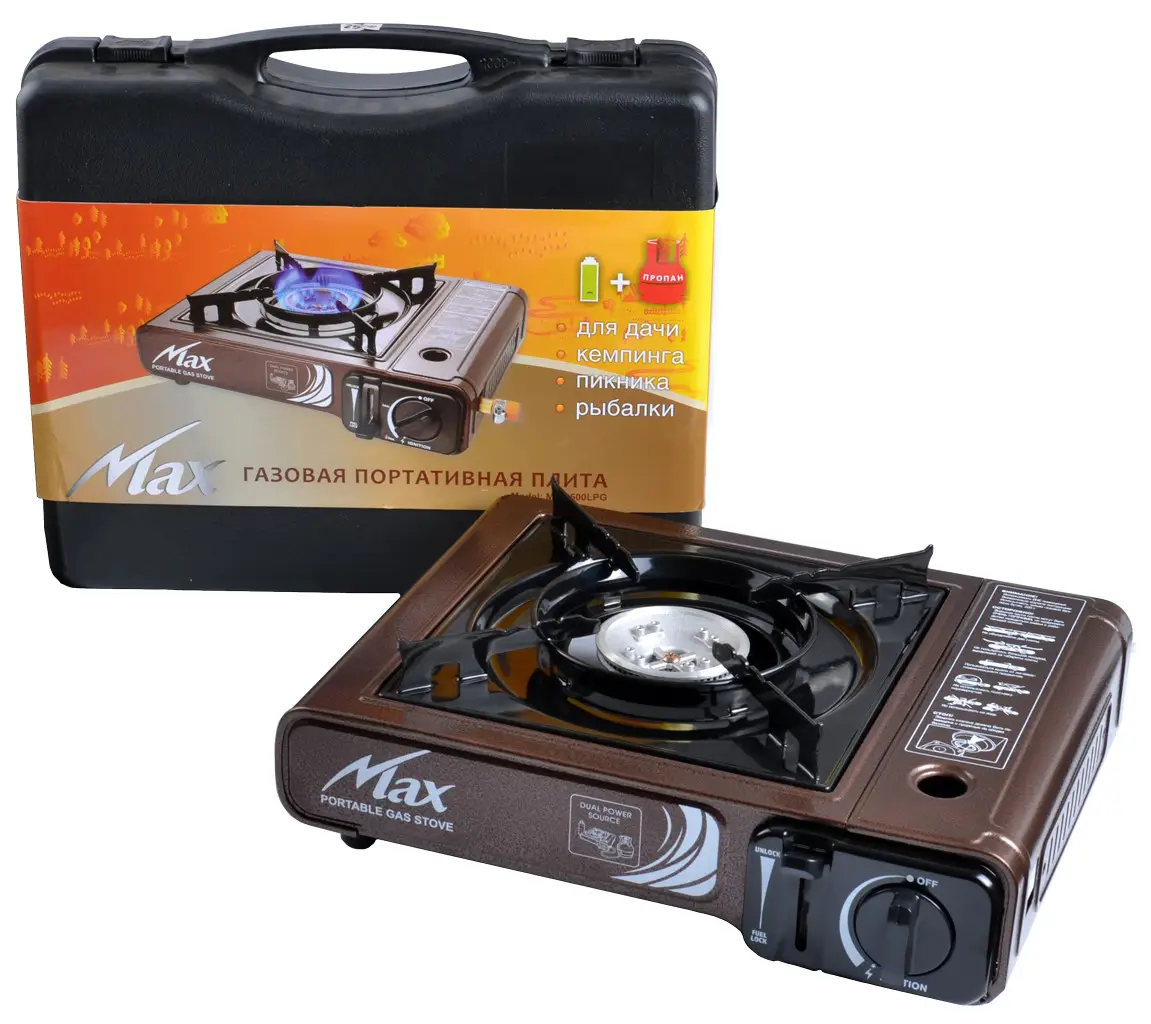 Плита газовая портативная MAX MS-2500LPG - Двойного действия - С адаптером - В кейсе - Корея - Коричнево-черная