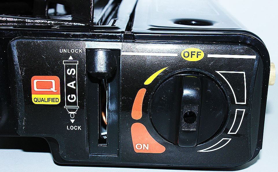 6. Поверните вентиль на газовом баллоне против часовой стрелки, чтобы подать газ на плитку и убедитесь что нет утечки газа.
