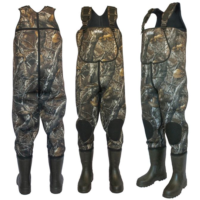 Полукомбинезон изготовлен из неопрена камуфлированных расцветок - "дуб" или "камыш". Запатентованные расцветки "TeclWood" прекрасно маскируются под пестрый фон леса или камыша.