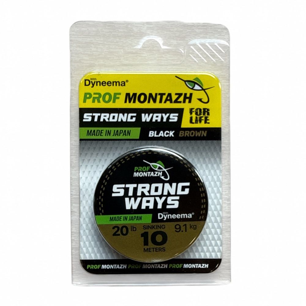 Поводочный материал STRONG WAYS Black Brown 20 LB 9,1 кг (10 м) - производится из качественных волокон Dyneema made in Japan. Отличается высокой стойкостью к истиранию, долговечностью, мягкостью и прочностью на узлах.
