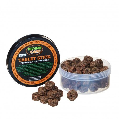 Растворимая стик Таблетка – удобная альтернатива привычному ПВА-стику. Изготовлена из проверенных и на 100% работающих сортов пеллетса – Krill pellets, Trout и Carp pellets.