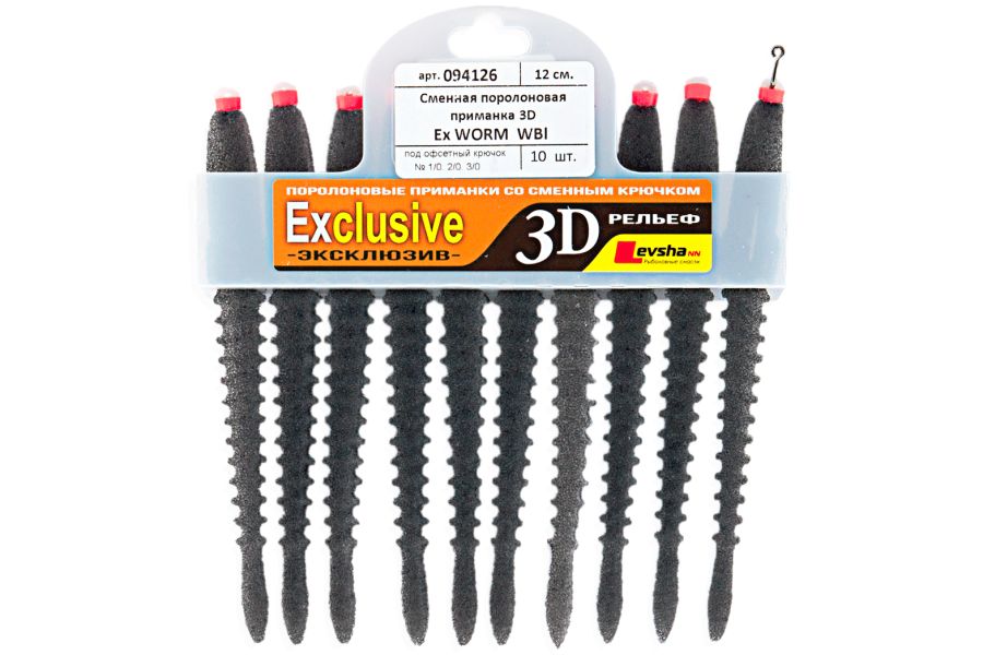 Приманки серии Ex WORM это равноценная замена силиконовой приманки - червя. Они считаются одними из самых популярных среди спиннингистов за счет своей уловистости. Игра поролонки Levsha 3D Ex WORM очень реалистична, повторяет движения настоящей рыбки. Но есть у них и недостаток – это недолгий срок службы материала. Таким приманкам часто требуется замена, поэтому готовые наборы от фирмы Левша НН – отличное решение. Удобство этой модели заключается в том, что на замену порванной рыбки уходят 2-3 секунды.