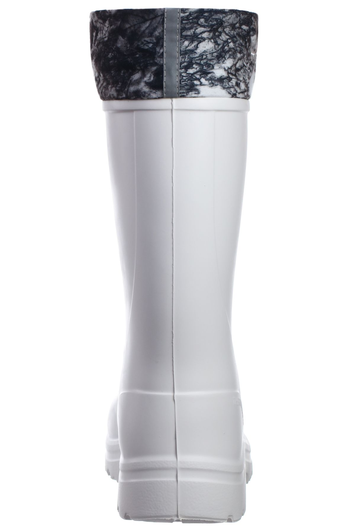 Колодка разработана специально для широкой стопы и высокого подъема. Благодаря широкому голенищу сапоги легко снимать и надевать без помощи рук. Высота сапога из ЭВА с манжетом составляет в среднем 41 см, т. е. это тип коротких сапог, в которых удобно сидеть на зимней рыбалке. В сапогах из ЭВА TORVI -45 °C также удобно ходить. Не только потому, что материал ЭВА легкий и упругий, но и потому, что край мягкого вкладыша выше края сапога (но ниже манжета). Таким образом, ЭВА не травмирует голень человека.