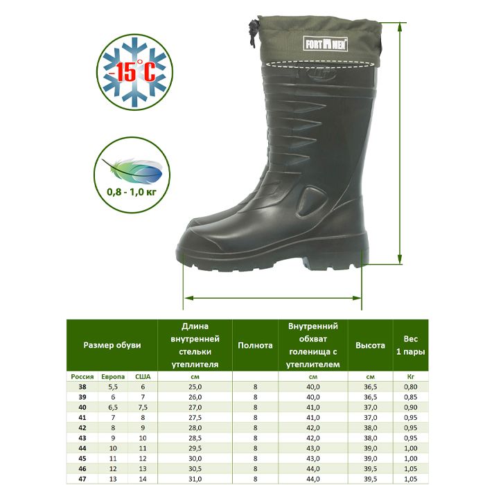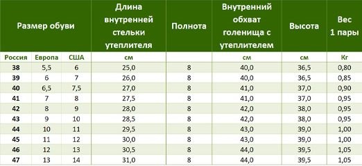 Средняя высота голенища - 35 см.