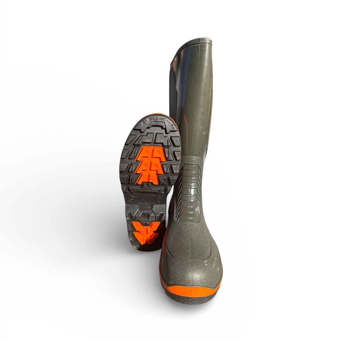 Модель выполнена в практичной трёхцветной расцветке (хаки/оранжевый/черный), сапог - хаки-337, вставки на сапоге и подошве - оранжевый-911, подошва - черный-201. Сапоги удобные и практичны.