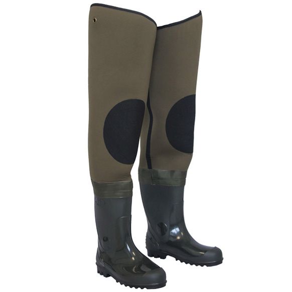 Нижняя часть рыбацких сапог - прочные сапоги из ПВХ, которые при необходимости могут комплектоваться вставным утеплителем из неопрена, что позволяет эксплуатировать сапоги рыбацкие этой модели при низких температурах.