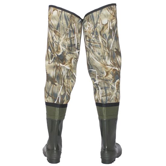 Камуфлированная расцветка неопрена позволяет маскироваться обладателю этой модели рыбацких сапог под пестрый фон леса, камыша.