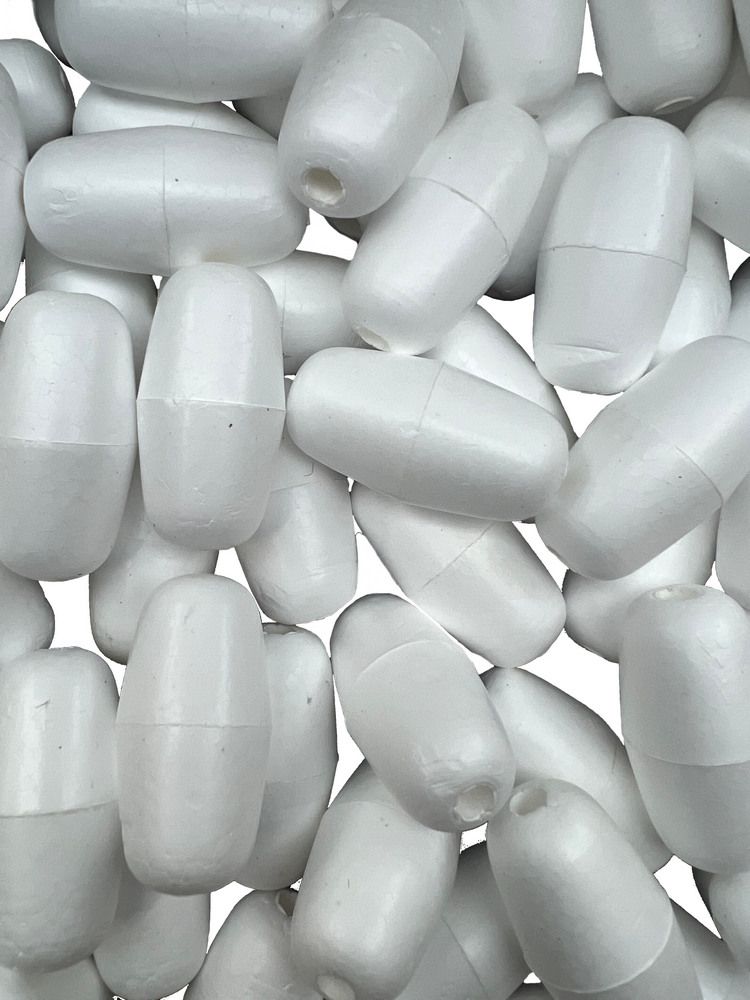 Сетевой поплавок №4-1 - Ø21 мм - L 42 мм - Отверстие Ø5 мм - Белый