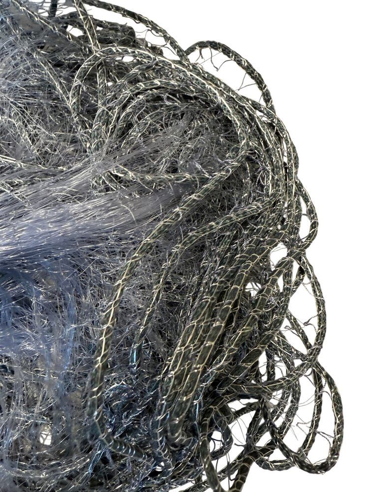 По верху сетки имеется шнур плавающий поплавочный (сплошной), а низ сети снабжен шнуром грузовым утяжеляющим (сплошной).