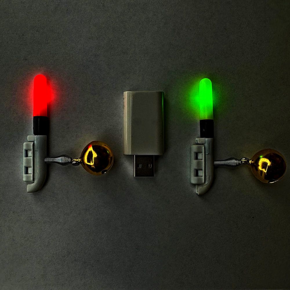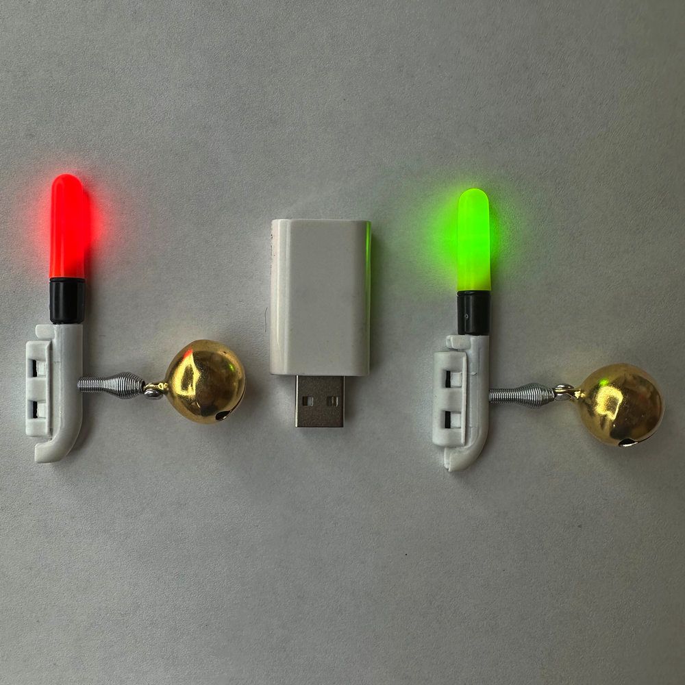 Сигнализатор поклевки для фидера - Светозвуковой - 1 колокольчик - 7 см - Питание 2 батарейки + USB зарядка - 2 шт/уп