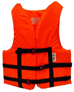 Спасательный жилет Anvi надёжный и удобный жилет для активного отдыха на воде. Выполнен из быстро сохнущей болоньевой ткани и наполнен пенополиэтиленом. По поясу и груди жилет усилен ременной лентой шириной 3см, зафиксированной в петли на спине, боках и передней стороне. Объём наполнителя соответствует расчётным нормам для спасательных жилетов. Фиксируется жилет двумя не регулируемыми застёжками на поясе и одним ремнём с фиксатором и затяжкой на груди.