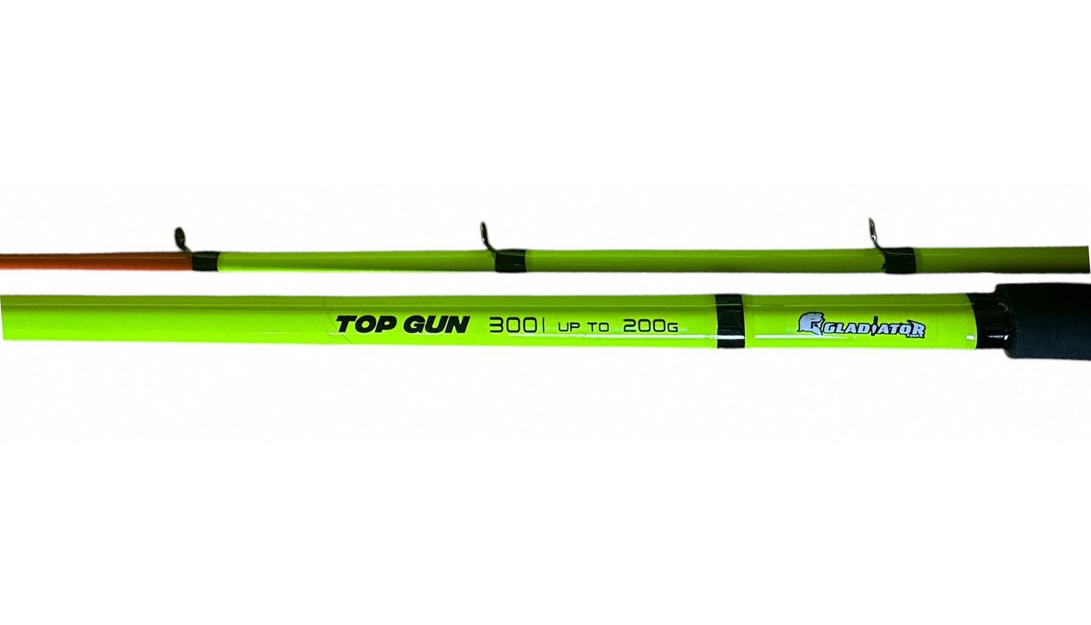 Спиннинг Gladiator Top Gun - мощное и надежное универсальное удилище, созданное для трофейной рыбалки и работы с тяжелыми приманками весом до 200 грамм.