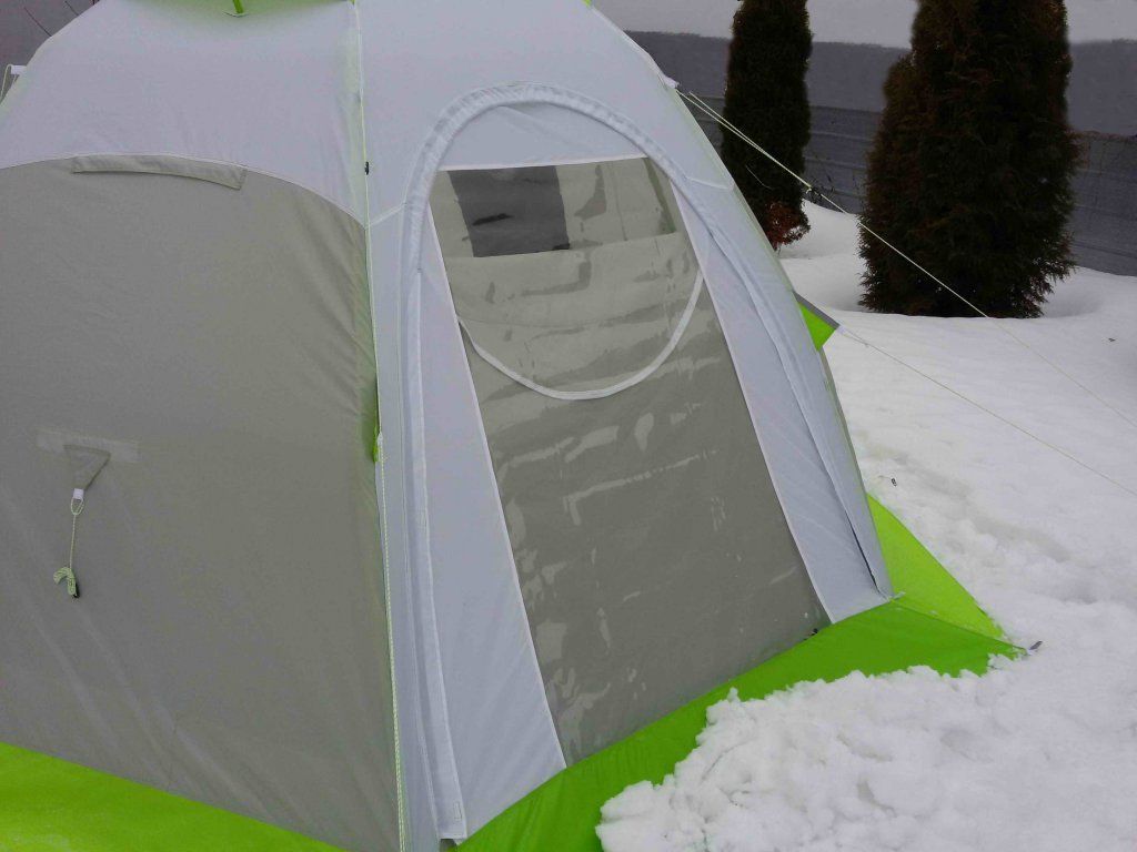 В палатке с прозрачной стенкой можно организовать комфортный отдых в тепле и уюте и любоваться панорамными видами окружающей природы. Особенно полезным использование прозрачной стенки будет для любителей зимней рыбалки, наблюдающим из теплого укрытия за снастями, расставленными рядом с палаткой.