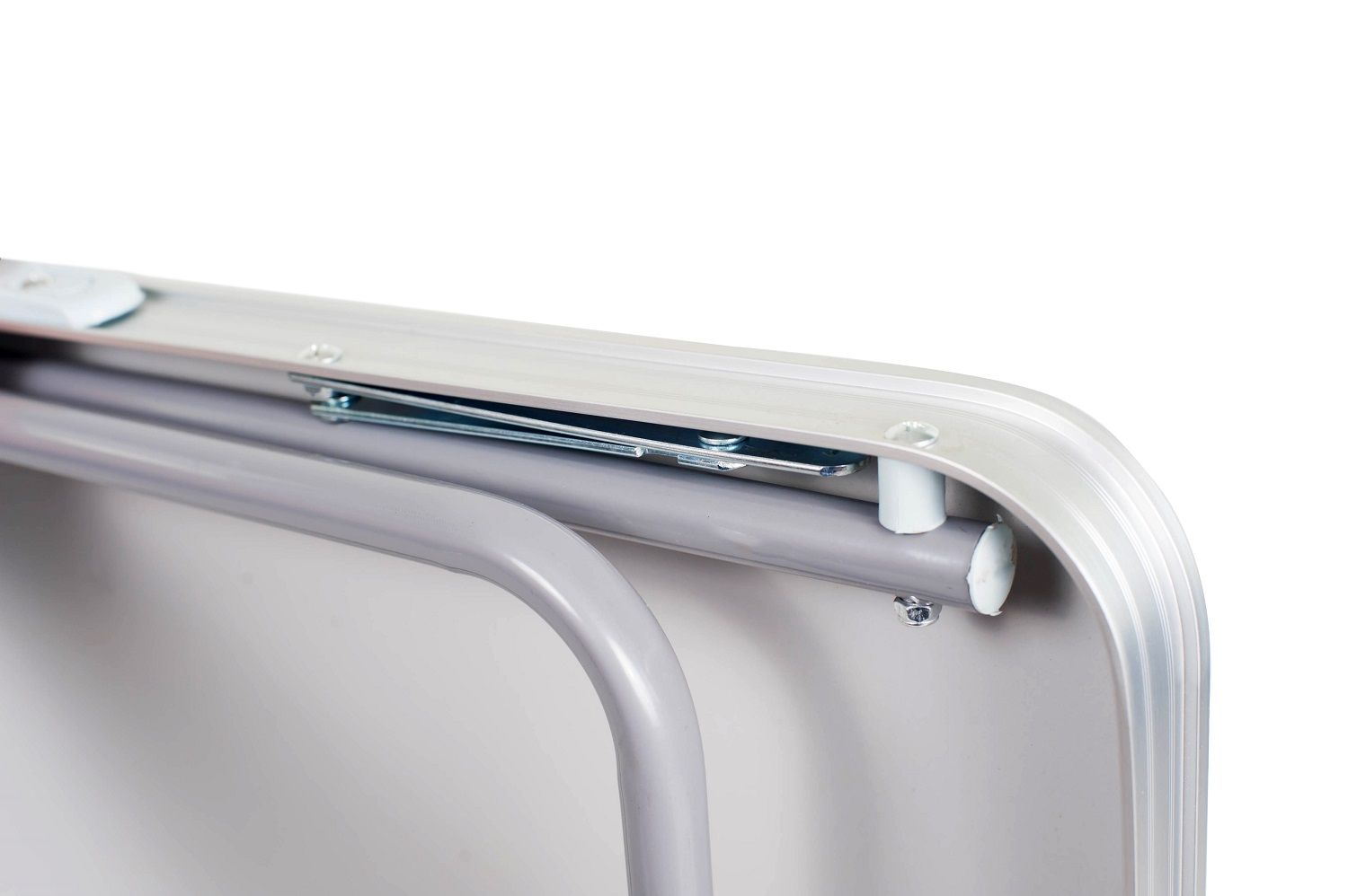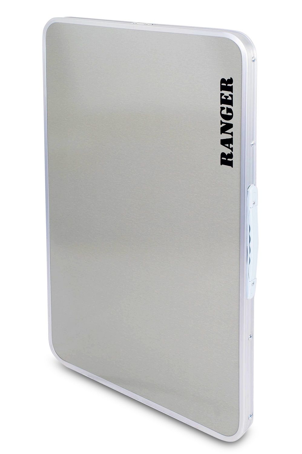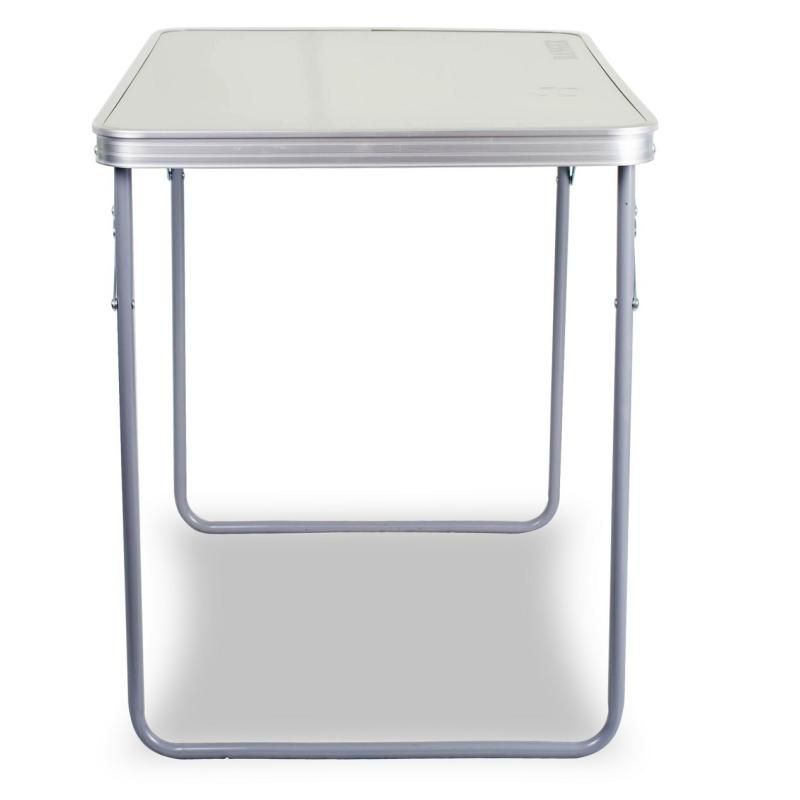 Стол очень простой – разложить и собрать его Вы сможете без посторонней помощи и дополнительных инструментов за 10 секунд. Ножки складываются под столешницу, что делает стол в сложенном виде плоским. Для переноски сложенного стола предусмотрена ручка. Вес всего 2,9 кг за счет лёгкой конструкции каркаса из алюминия. Столешница – ламинированная ДВП, с покрытием, выдерживает нагрузку до 30 килограммов.