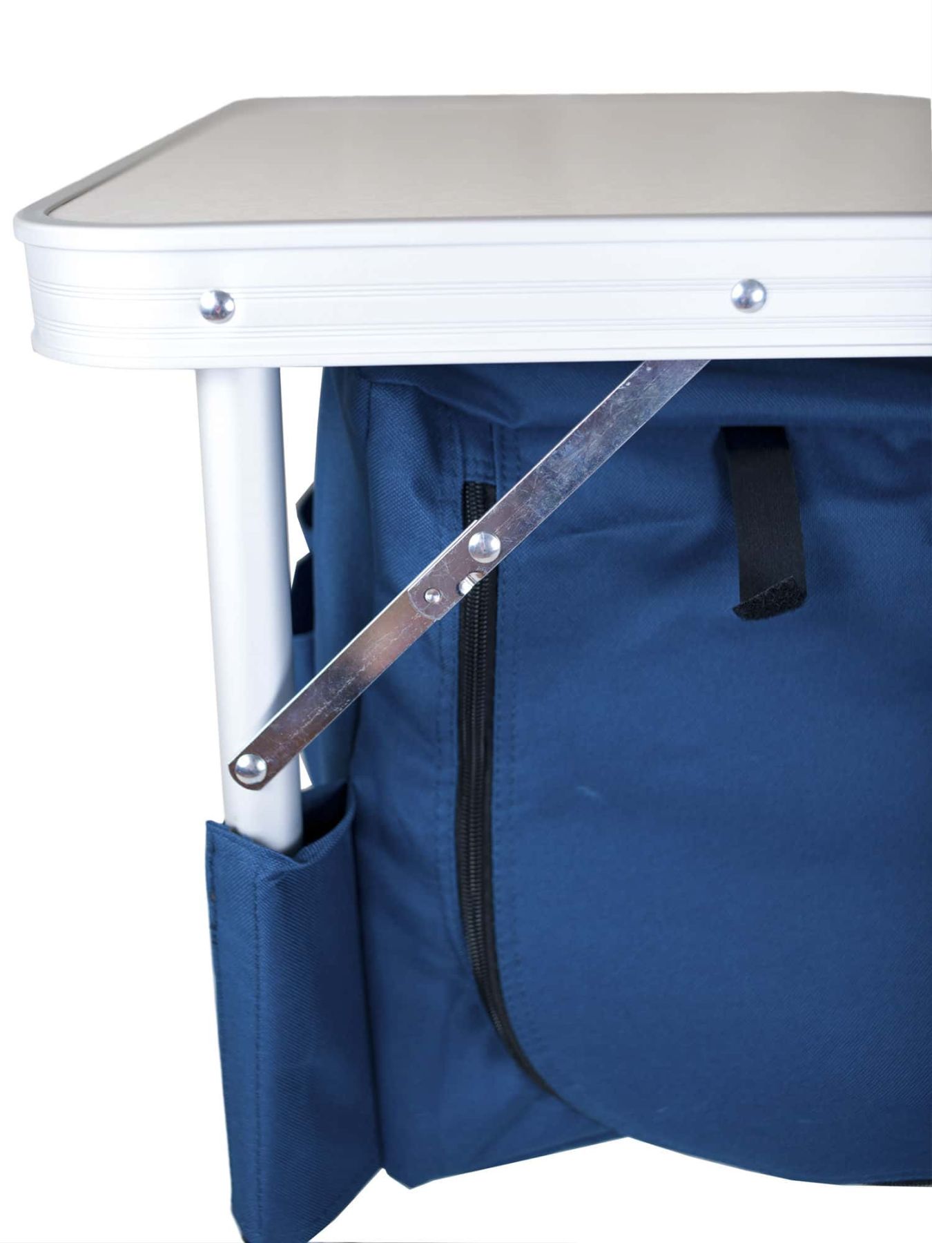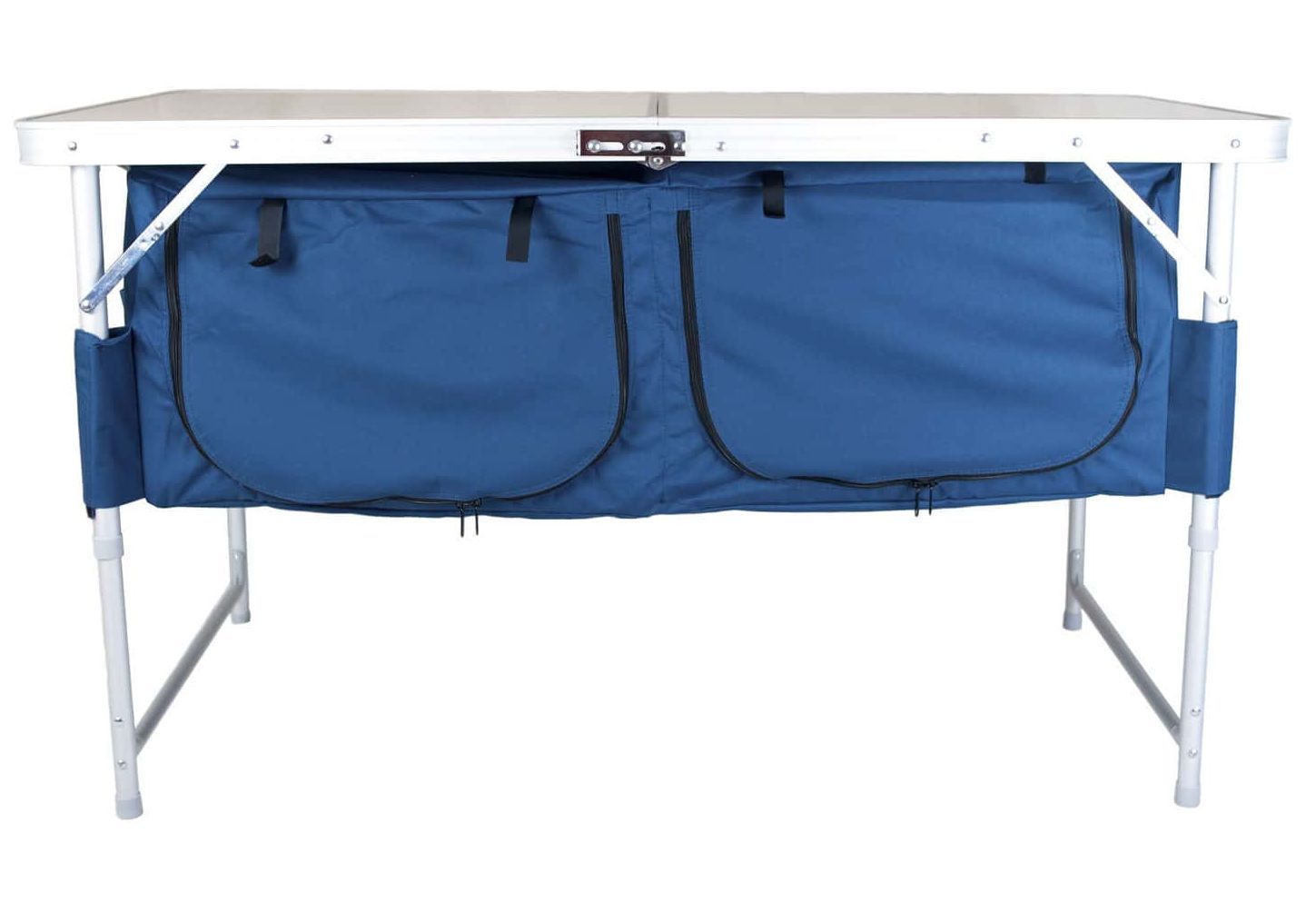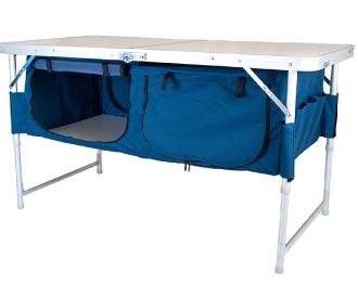 Стол тумба Ranger ТА-519 Rcase – практически своя кухня на природе. Двухсекционная полка закрытого типа отлично подходит для хранения продуктов, посуды, одежды. Полка сделана из непромокаемой и очень крепкой ткани. Каждая полка застегивается молнией и имеет доступ с 2-х сторон, нет необходимости обходить стол, все под рукой всегда. Для плотности полки на дно укладывается пластина из пластика. По бокам есть еще по три кармана для столовых приборов и других необходимых мелочей.