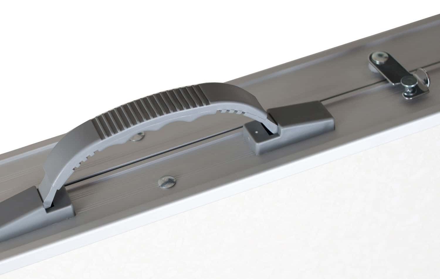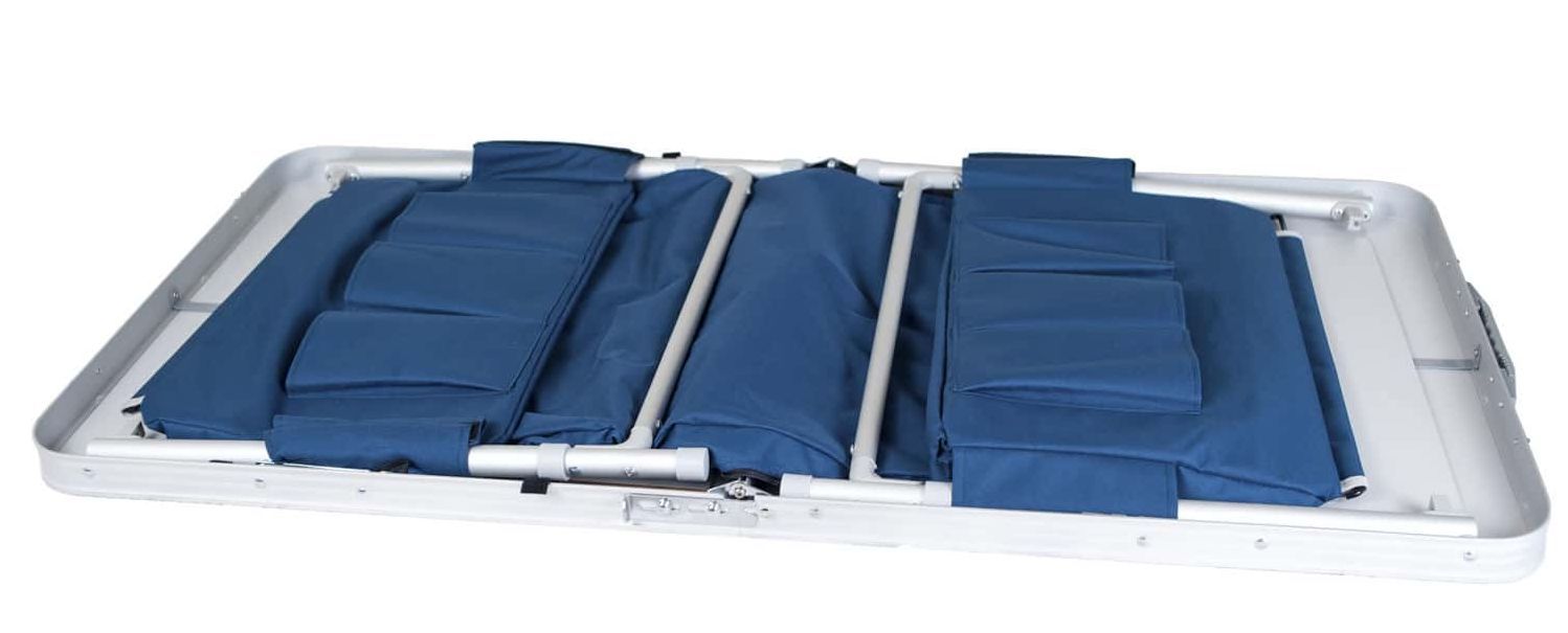 Стол прост в разложении и складывании. В собранном виде он представляет собой чемодан с ручкой, что очень удобно в транспортировке, также комплектуется чехлом для большей защиты.
