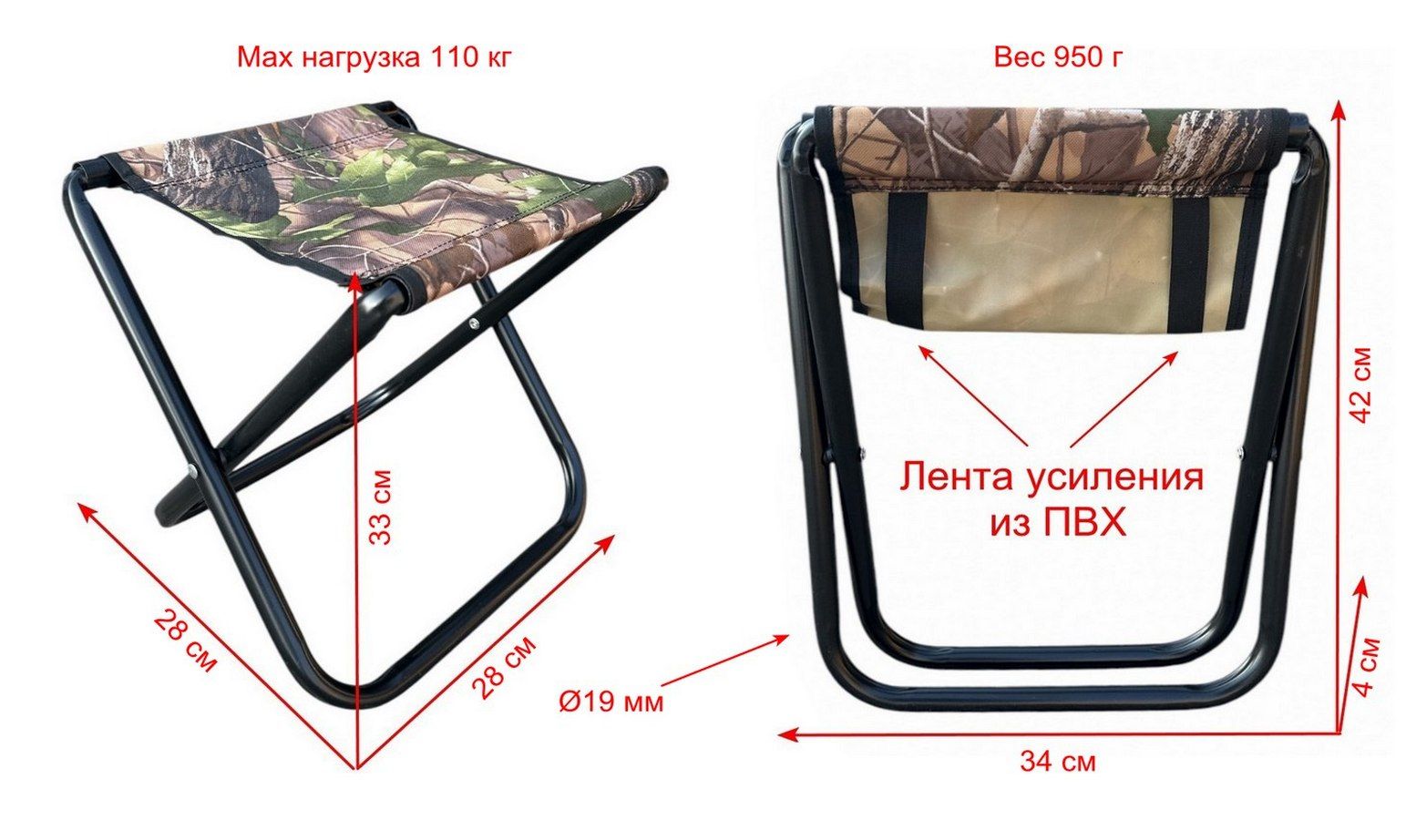 Стул без спинки Megastrike - SH9-3-28 - Усиленный - Камуфляж - 28х28х33 см