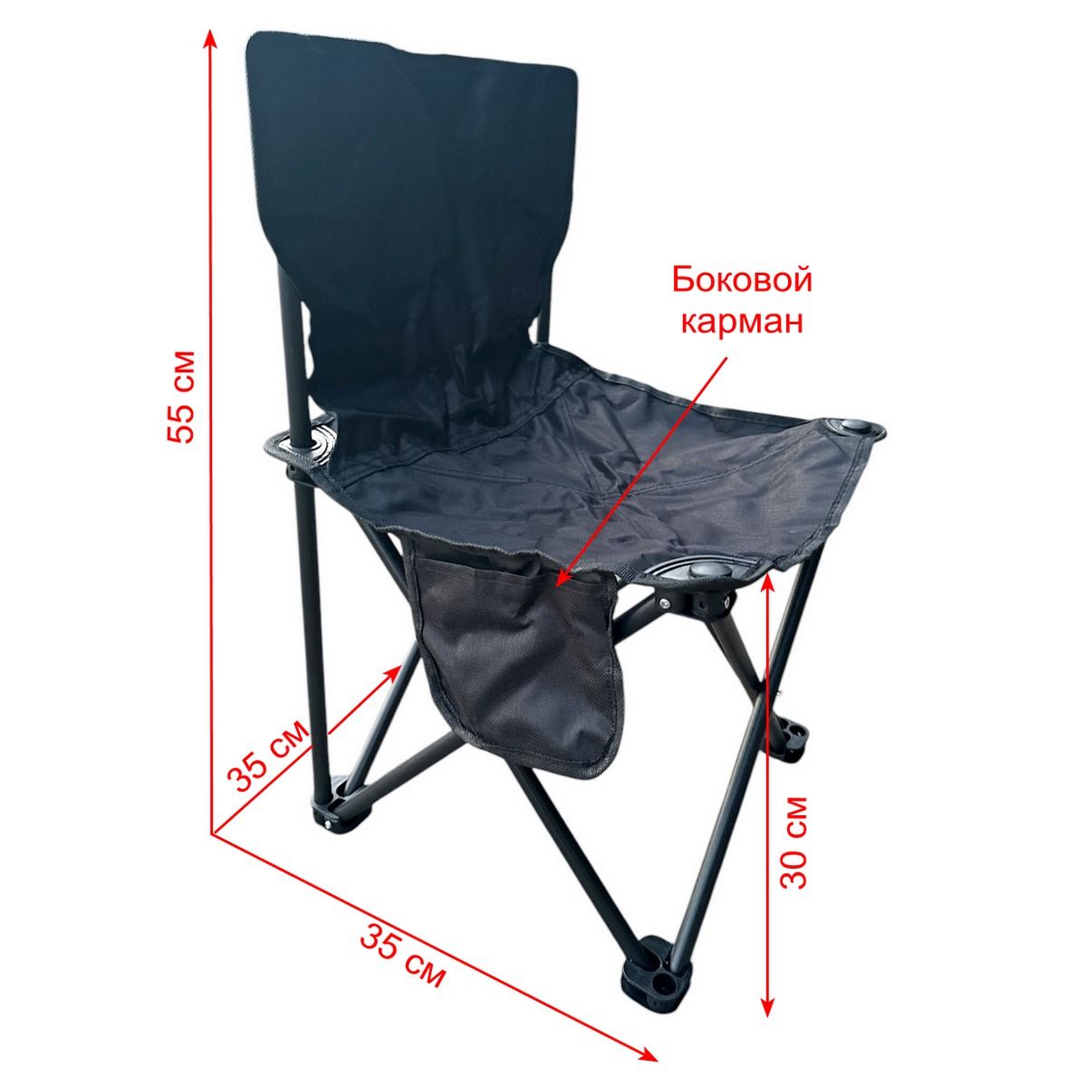 Стул "Зонт" туристический со спинкой и боковым карманом Megastrike - SH9-3-16 - 35x35x55 см - Чёрный