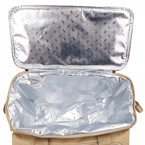Внутреннее отделение сумки выполнено из специального ПВХ-материала PEVA, который легко моется, является водонепроницаемым и прекрасно выполняет свои функции термоизоляции.
