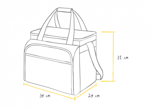 Есть наружный карман для хранения мелочей. Объем холодильного отсека — 13,5 л. Рекомендуется использовать вместе с аккумуляторами холода серии АХ из расчета не менее 10% от объема термосумки.